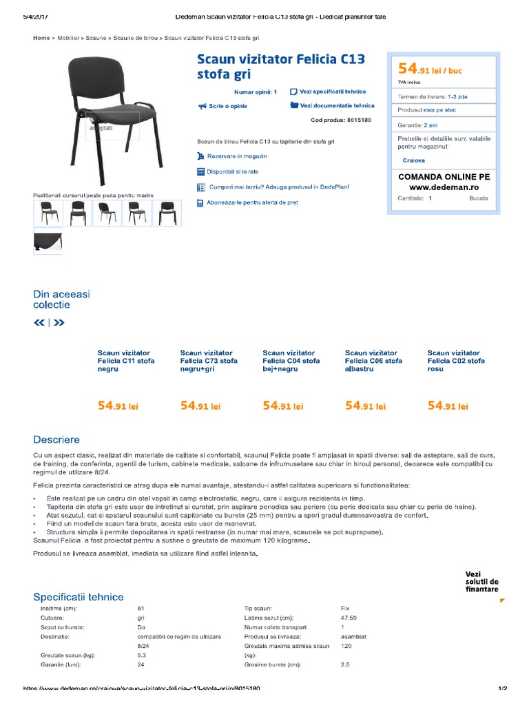 Dedeman Scaun Vizitator Felicia C13 Stofa Gri Dedicat Planurilor